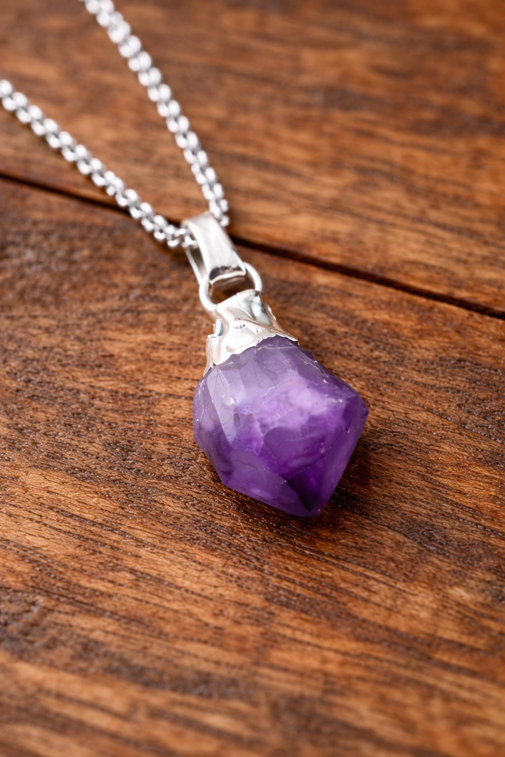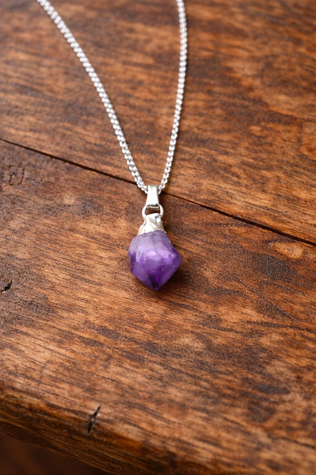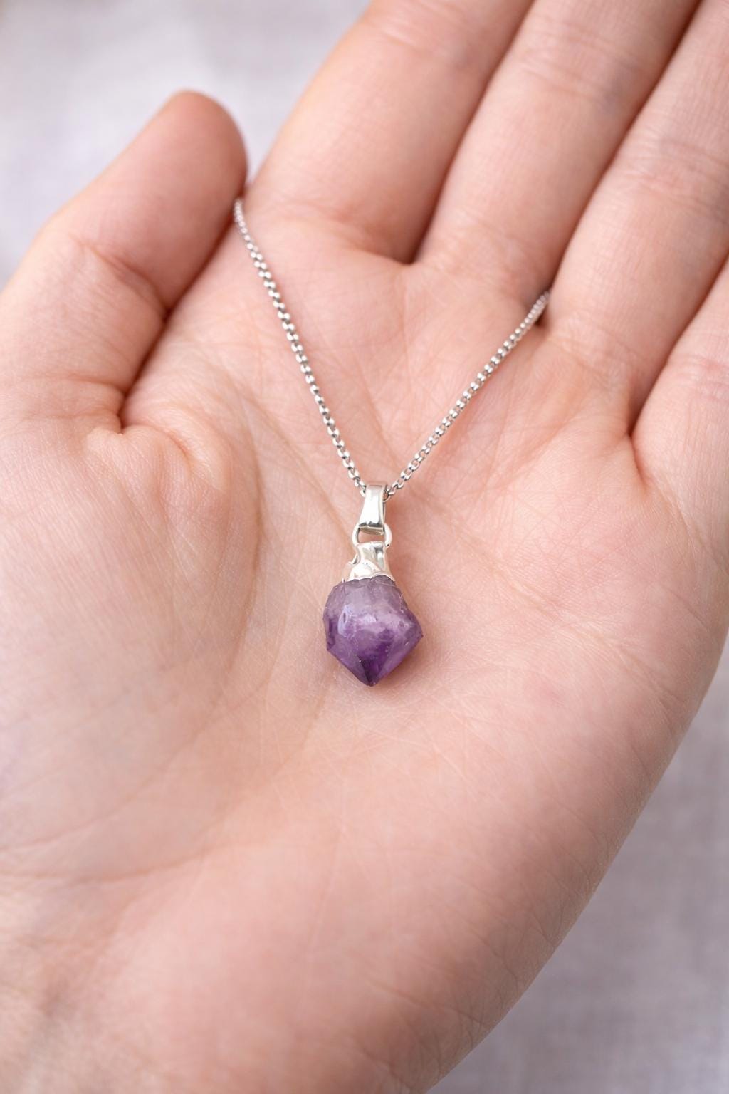 Raw Amethyst Gemstone Necklace – Simple Minimal Crystal Pendant Gift for Her